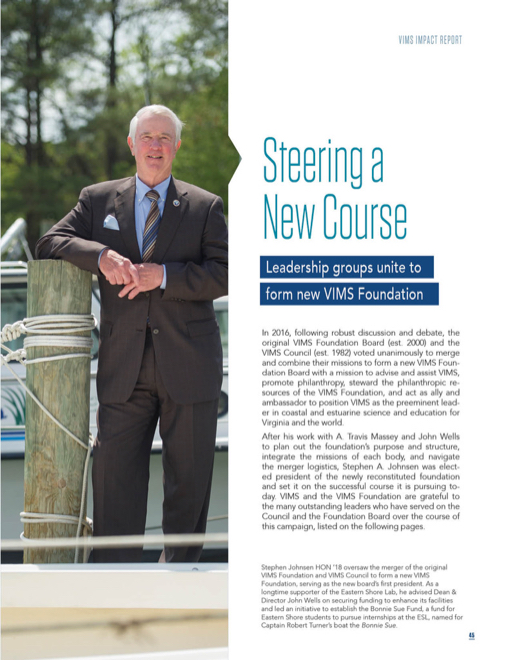 To those whose philanthropy helps support VIMS, thank you. Your impact on our mission is immeasurable.