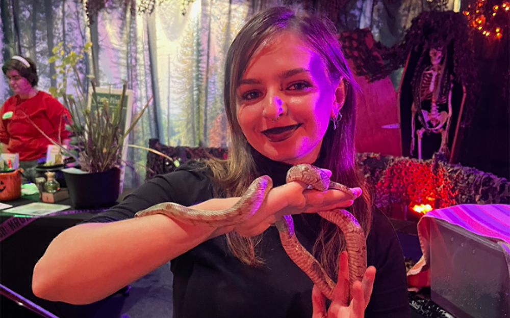 Amy Nicholson M.A. ’24 uses a theater background to bring science lessons to life at the Virginia Living Museum following graduation from W&M's Batten School & VIMS.