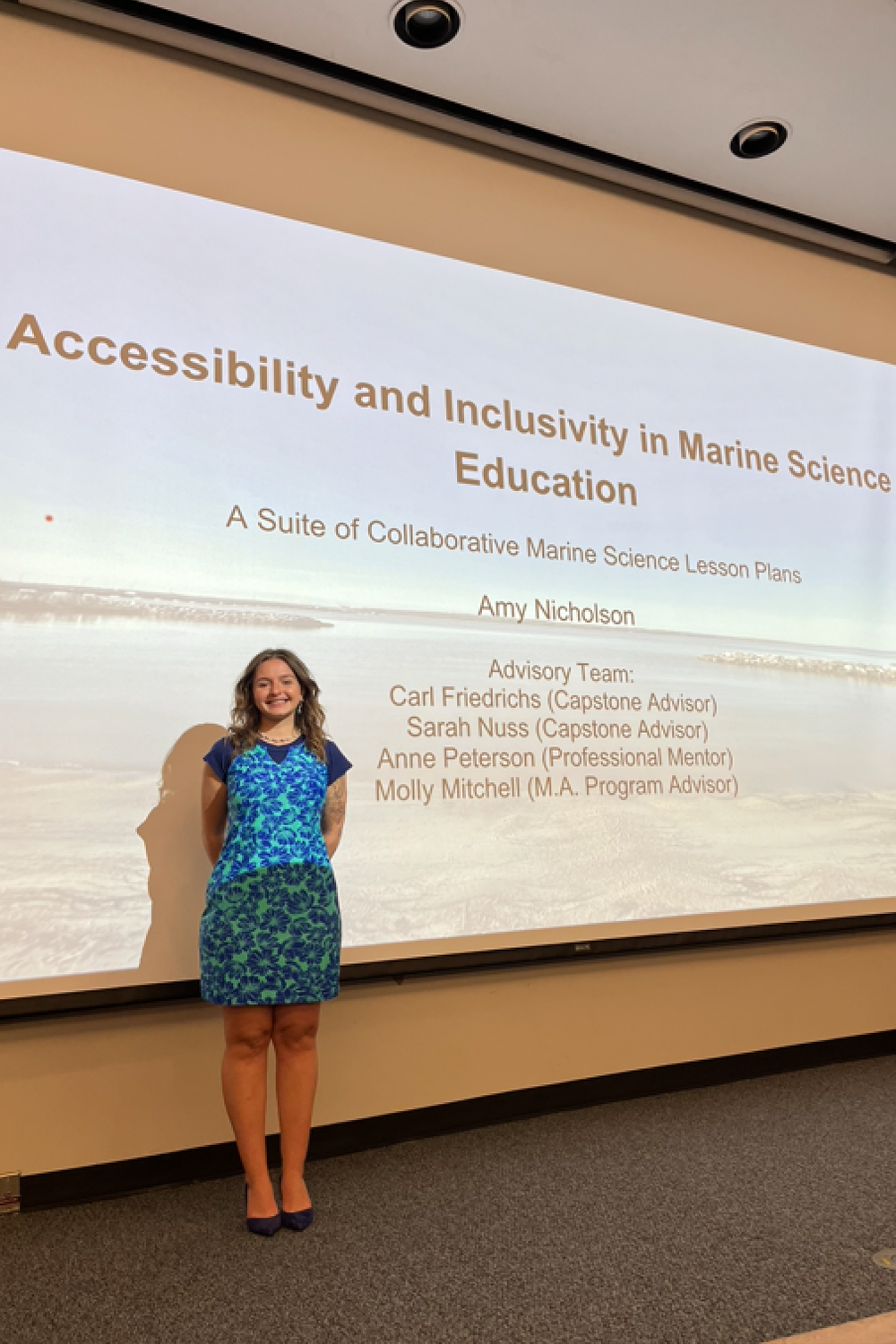 Inspired by those role models, she developed a suite of marine science lesson plans for her capstone project, titled, “Accessibility and Inclusivity in Marine Science Education.” Working with the Virgina Science & Educator’s Alliance (VA-SEA) and MAP, Nicholson identified gaps in available education resources and subsequently created three lesson plans related to first grade life science, fifth grade marine geology and high school environmental justice.