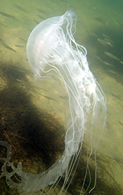 Jellyfish are one of the more common animals encountered by visitors to Chesapeake Bay and nearby coastal waters, especially during summer. The most common jellyfish in the summertime Bay, and the one most responsible for stinging swimmers, is the bay nettle Chrysaora chesapeakei.
