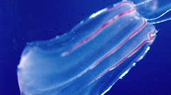 Beroe feeds primarily on the other common ctenophore in the Bay, the sea walnut.