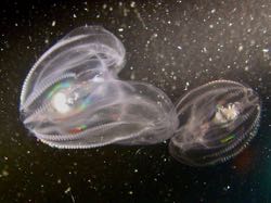 The sea walnut or comb jelly is very common throughout most of Chesapeake Bay, and, while the population spikes seasonally, is present year-round.