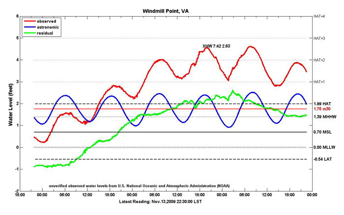 This Tidewatch chart, which shows conditions at Windmill Point during the intense nor'easter that struck the mid-Atlantic in November 2009, provides an example of the wealth of information that these types of charts provide. Click image for larger version.