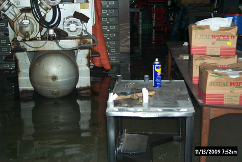 Flood waters in Franklin Hall in the VIMS Boat Basin. 7:49 am on Thursday, November 12, 2009.