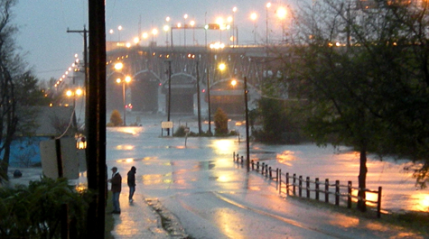 Gloucester Point, Virginia with storm surge from the nor'easter covering Greate Road. 5 pm EST on Thursday November 12 2009.
