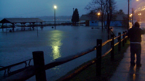 Flood waters enter Gloucester Point Park. 9:17 am, Thursday, November 12, 2009.