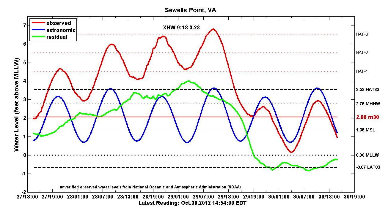 The 3-day Tidewatch record for Sewells Point during the passage of "Superstorm Sandy."