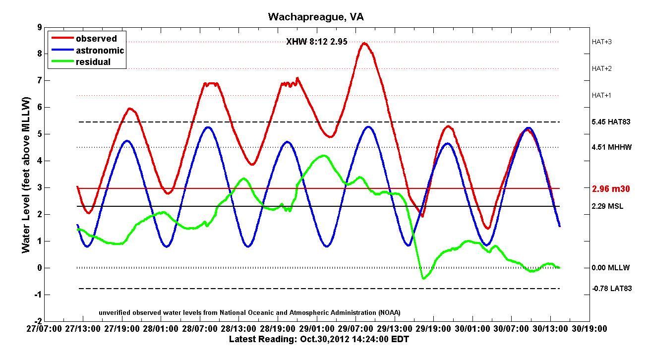 The 3-day Tidewatch record for Wachapreague, Virginia during the passage of "Superstorm Sandy."