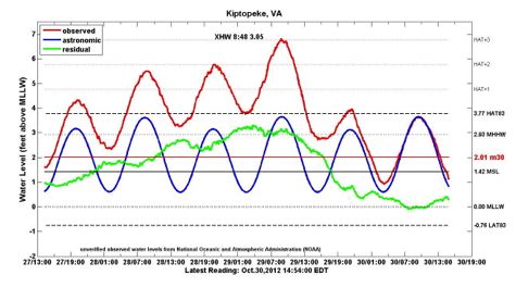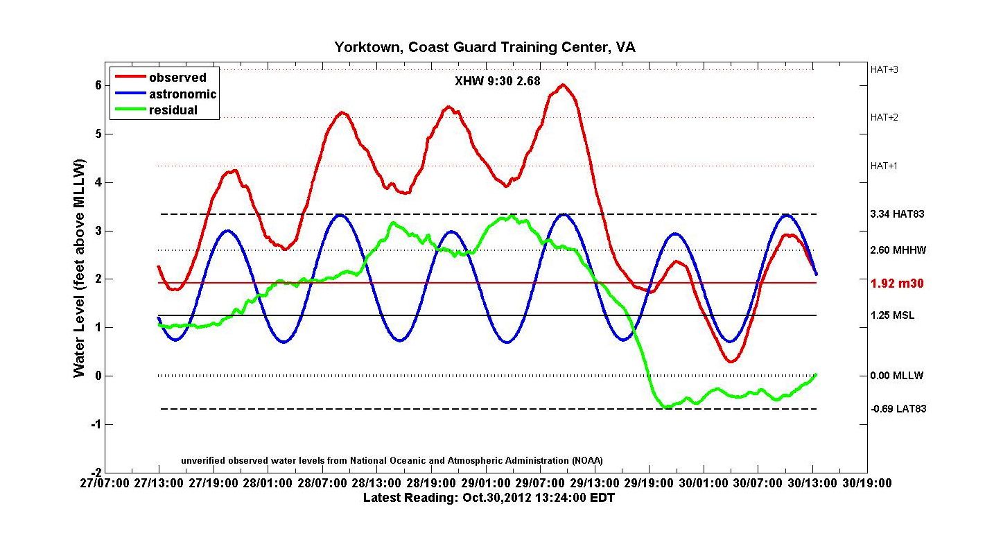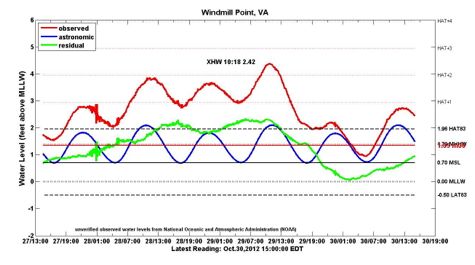 The 3-day Tidewatch record for the Yorktown Coast Guard Training Center during the passage of "Superstorm Sandy."