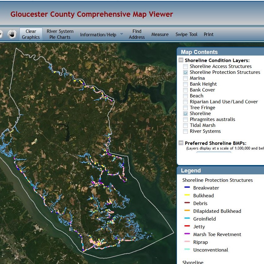 - Shoreline Management Model (SMM) – This GIS model recommends the best management practices for a shoreline using available map data and decision tree logic displayed in the Comprehensive Map Viewer. Best for desktop reviews, the model output can be viewed by locality in the CCRMPs or for all of Tidewater Virginia at ADAPTVA