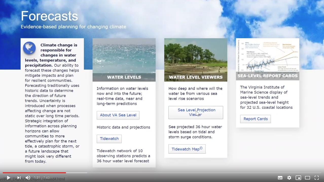 AdaptVA is a gateway to information for individuals, local programs, and agencies engaged in climate adaptation. AdaptVA focuses on the physical and social vulnerabilities by integrating the best available science, legal guidance, and planning strategies. Visitors will find legal and policy resources, stories that explain adaptation through maps and pictures, a searchable web catalogue, and mapping tools that address short and long-term predictions for rising water levels.