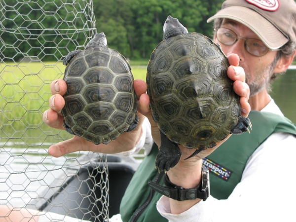 The diamondback terrapin (Malaclemys terrapin) is listed in Virginia as a species of "Very High Conservation Need" based on threats due to nest predation and drowning of adults in crab pots. This study looks for ways to preserve terrapin populations while minimally affecting the blue crab fishery through examination of the blue crab fishery and diamondback terrapin spatial habitat overlap.