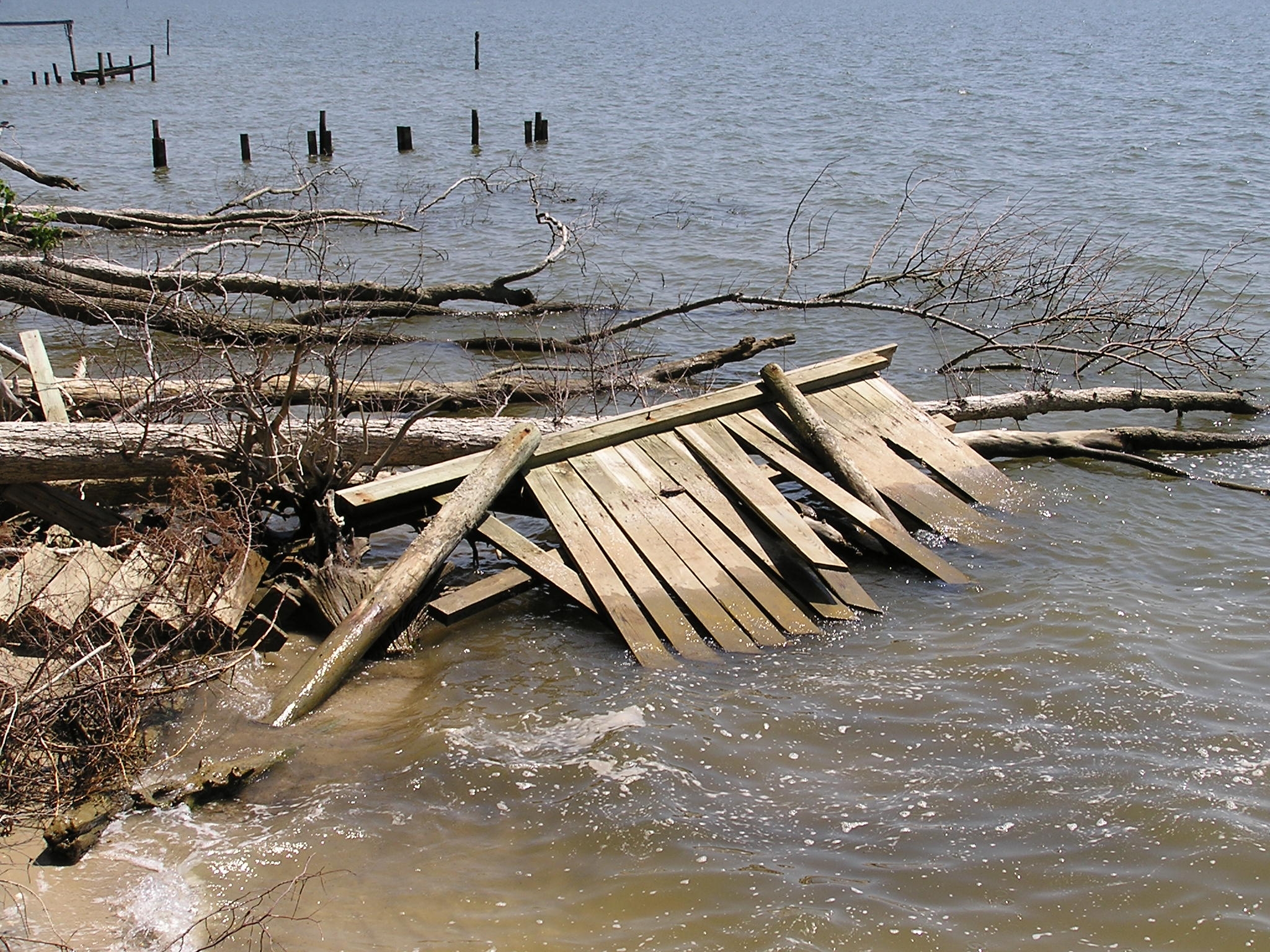 The Chesapeake Bay is continually polluted with a wide variety of marine debris including derelict crab traps. Derelict (lost or abandoned) blue crab traps (pots) can continue to capture and kill animals for several years depending upon salinity and wave climate “Ghost fishing” by derelict fishing gear is another type of marine debris impact. CCRM researchers quantified the death of over 31,000 blue crabs, fish, birds, and turtles in crab pots that continued to catch and kill animals during a 6-year study.