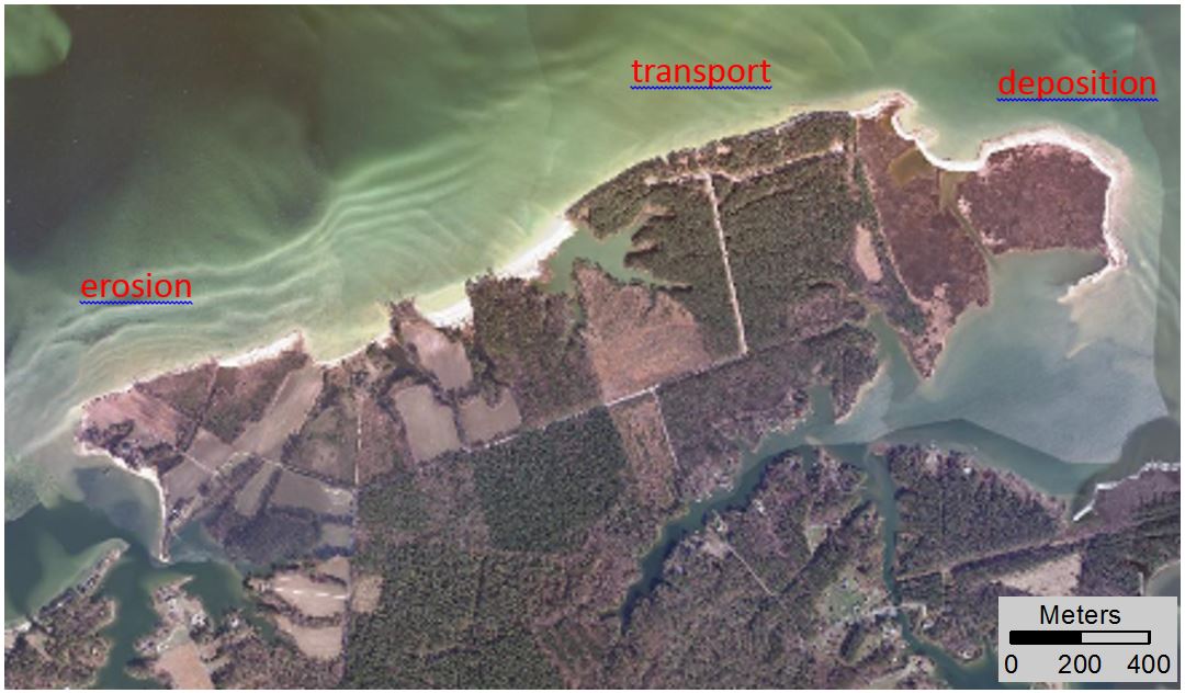 Sediment cells, also known as littoral cells, are reaches of shoreline that encompass the intertidal and nearshore movement of sediment. A sediment cell basically consists of zones of erosion (e.g. shoreline bluffs), transport (e.g. beaches), and deposition (e.g. spit). Cells are relatively self-contained because beyond the zone of deposition, some sediment may be lost to a nearby inlet or water body. The nearshore environment is intimately affected by riparian zone and upland land use, and human alteration. Management decisions along the shoreline often are done on an ad hoc basis, considering individual properties or adjacent properties, at best. Anthropogenic influences often cause unintended consequences, and advancing our knowledge of sediment transport and distribution in shoreline systems, and identifying sediment cells in Chesapeake Bay and tributaries is a necessary step to protect and better manage sediment and sediment-dependent resources.
