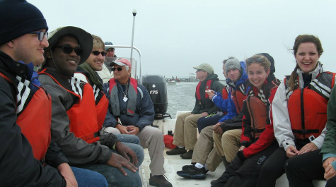 William & Mary students and professors embark on a field trip to study Physical Oceanography during the Field Studies in Coastal Marine Environments course.