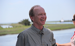 P.G. Ross, Alan Birch, and Edward Smith prepare to sample experimental oyster reefs in the Virginia Coast Reserve.