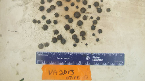 At ESL’s restoration site, deployed gear is maintained and replaced regularly throughout the grow-out period. Scallop survival and growth are monitored during these maintenance trips and cage stocking densities are reduced as the scallops grow. Scallops are released from these cages into the grassbeds at 14 months old. In addition to these scheduled releases, scallop pediveliger (ready to set) larvae, early post-set, and juveniles of various sizes are freely distributed throughout the grassbeds when numbers exceed the capacity of the hatchery, nursery, and/or grow-out site.