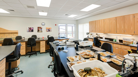 Seaside Hall features a taxonomy laboratory, a small analytical laboratory and a general use room that serves as a library, conference room or classroom.