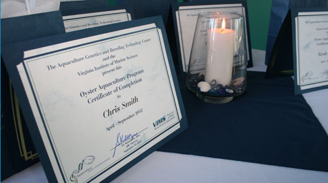 The Virginia Institute of Marine Science recently celebrated the graduation of four emerging professionals who will be joining the ranks of Chesapeake Bay’s rapidly growing oyster aquaculture industry.