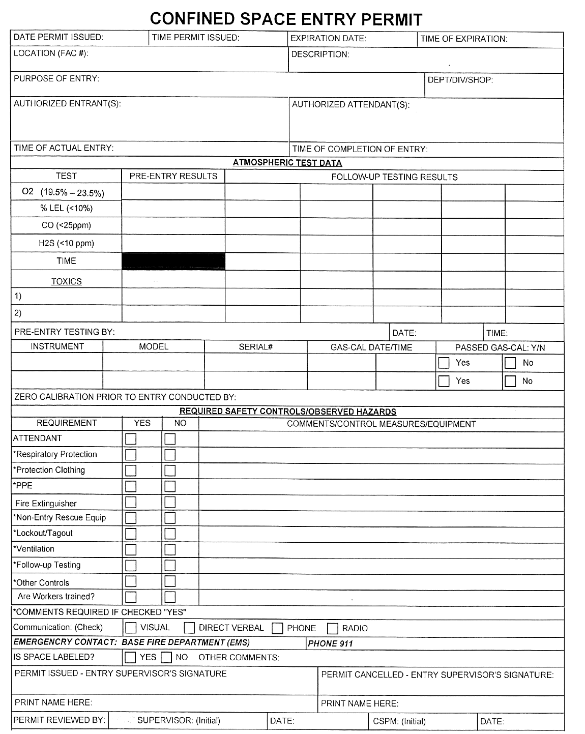 Access Confined Space Entry Permit (PDF)