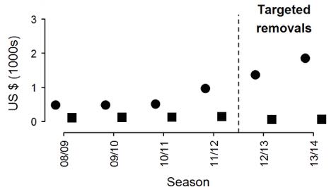 They caution that the net benefits of removal programs will ultimately depend on removal costs, which may vary widely by fishery.
