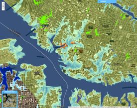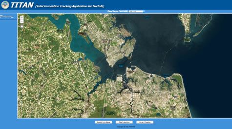 Norfolk’s flood-map product, named TITAN for “Tidal Inundation Tracking Application for Norfolk,” shows water levels throughout the city based on observations at NOAA’s official tide gauge at Sewells Point near Naval Station Norfolk. The pair would enhance the TITAN display by incorporating high-resolution digital elevations derived from LIDAR and connectivity to local storm-water drainage systems.