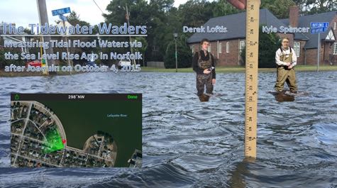 “In its current implementation,” says Loftis, “the SLR [Sea Level Rise] App© is used to collect observations of flood extent, not to forecast or share data on past flood events. Kyle and I saw the competition as a way to make an invaluable resource even more useful by extending its reach to a broader audience. Our goal was to enhance preparedness for current and future flooding in Norfolk, Hampton Roads, the U.S. East Coast, and ultimately the rest of the world.”