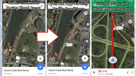 Other ideas include giving users the ability to receive traffic alerts through integration with the Waze App© when forecasts call for flooded streets, and automatic rerouting when coupled with Google Maps©. Similar tools could give emergency managers the geospatial information needed to route emergency vehicles, issue evacuation orders, or take other proactive measures.