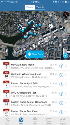 The Sea Level Rise App©, developed by the Norfolk-based non-profit Wetlands Watch, allows users to map flooded areas in their neighborhoods using the GPS unit and camera on their iPhone or Android. It first saw use in Hampton Roads—second only to New Orleans as the U.S. area most threatened by sea-level rise—but can be used on any coastline around the world.