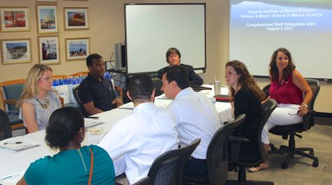 As the U.S. House and Senate break for their traditional summer recess, a group of congressional staffers used the opportunity for a visit to the Virginia Institute of Marine Science to learn how its faculty, staff, and students are working to address the issues facing Chesapeake Bay and the coastal ocean.