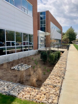 According to Mark Brabham, director of Facilities Management at VIMS, features that contribute to the building’s Gold certification include natural and high-efficiency LED lighting, low-flow toilets and sinks, a highly efficient HVAC system, architectural sunshades, use of recycled content within building materials, tracking of recycled construction waste, bike racks, and environmentally friendly landscaping that uses native plants, rain gardens, and other techniques to minimize run-off and provide habitat for birds and other wildlife.