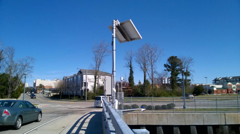 StormSense currently encompasses a network of 28 water-level sensors that gather data used to enhance emergency preparedness for flooding resulting from storm surge, rain, and tides. Many of the sensors are mounted on small bridges that cross the tidal creeks scattered throughout Hampton Roads.