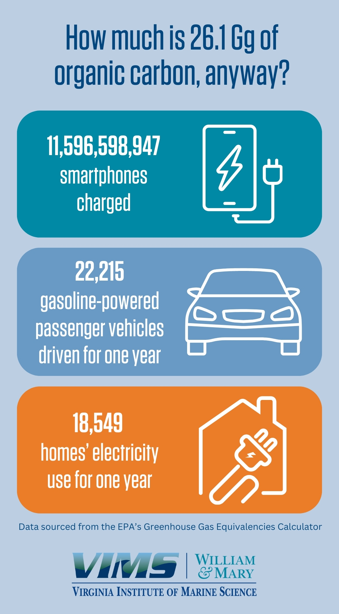“We’re finding that along certain coastlines, carbon is not buried as long as we expected and thus, relying on coastal wetlands to store carbon is not a permanent solution to mitigating carbon emissions,” said lead author of the study Mary Bryan Barksdale, a School of Marine Science Ph.D. student. “Coastal carbon budgets that ignore carbon storage and erosion in deeper and unvegetated sediment overestimate the strength of the coastal carbon sink.”