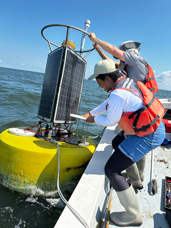 "We retrieve and deploy the sonde every month when we go to the buoy for monthly maintenance," says Parker, "That day is a great example of how CBNERR works to immerse its Hollings Scholars and interns in field experiences to help connect them to the waters we monitor and protect."