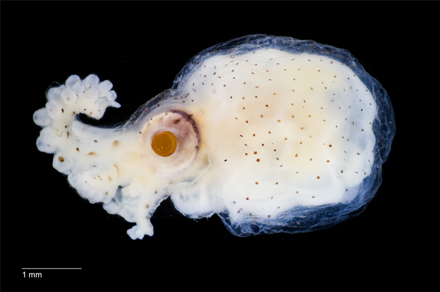 M.S. student Miguel Montalvo won the "Microscopic" category for with his photo Blanket octopus paralarva, which shows a young octopus in a planktonic stage between hatchling and subadult.