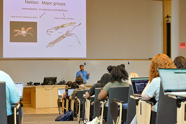William & Mary's Introduction to Marine Science is a dynamic, interdisciplinary course that has grown in popularity in recent years. Taught by Professor Mark Brush, the class is available as an elective and also serves as a gateway for undergraduates pursuing the new major in coastal and marine sciences.