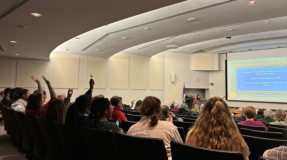The After Hours lecture series, hosted by the Batten School of Coastal & Marine Sciences & VIMS, is a free lecture series open to the public. “After Hours help to bridge the gap between scientific knowledge and public understanding,” said Kristen Sharpe, assistant director of outreach & engagement, “and they provide a platform for Batten School & VIMS researchers and advisory staff to highlight their cutting-edge work while exploring some of the pressing issues facing the Bay and our global ocean.”