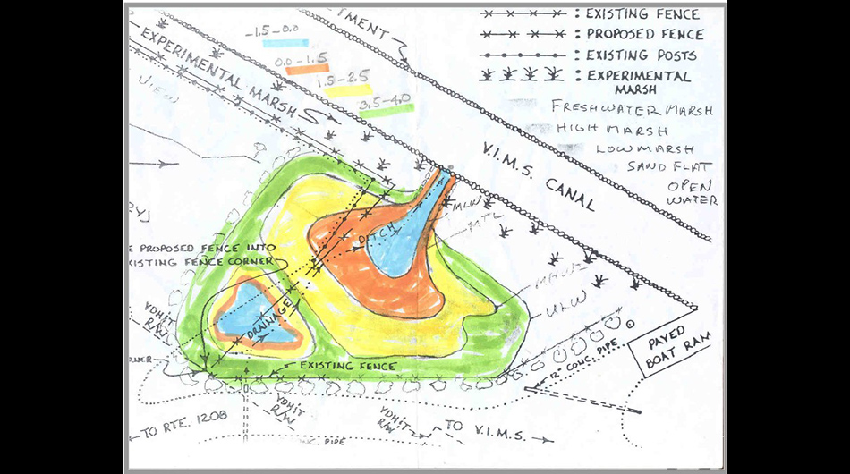 Long before the marsh became a beacon of environmental education, the site had been heavily altered, recalled Duhring. “Historic maps show a salt marsh at this location. Then, a commercial business that was operating at what is now the VIMS boat basin dug a canal for boat access and filled the marsh with the dredge material.”