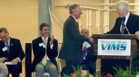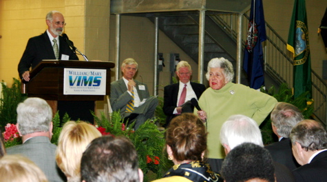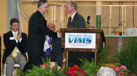 Other noted guests included Virginia’s Attorney General William Mims, State Senator John Miller, Clerk of the Senate Susan Clark Schaar; officials from the VA Department of Planning and Budget, Gloucester County officials, the William and Mary Board of Visitors, the VIMS Council, and the VIMS Foundation Board.