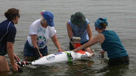 A more non-traditional partnership is between Ph.D. student Lila Rose and Kim Denmark, a 7th-grade English teacher at Booker T. Washington Middle School. Rose, who doubled majored in Geology and English before arriving at VIMS, has already begun reading the novels on Denmark’s class list in search of science “tie-ins.” One idea is to use Esperanza Rising, a Depression-era story of a young girl’s journey to the U.S., as a platform to learn about mapping with Google Earth. The students will also observe birds at a classroom feeder, and then write about them and the importance of Chesapeake Bay to migration patterns along the Eastern seaboard.