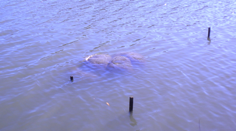 Tracy Collier, an employee at Home Technologies in City Center at Oyster Point, was walking her employer’s Westie around the Center’s manmade lake on Thursday when she saw a large, mysterious blob floating in the water.