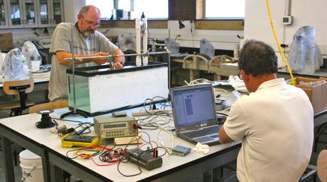 VIMS researcher Dr. Rich Brill—a noted expert in the physiology of fish and sharks who is also affiliated with the National Marine Fisheries Service—is one of the new lab’s first users, and a big fan. “It’s the physical location and proximity that set it apart,” he says. “The sharks are right here, the lab is right here, the seawater’s right here. If you’re working with sharks or other coastal and open-ocean species, this is the place to be.”