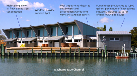 The uniqueness of the 7,597 square-foot building is perhaps best described by a phrase from the world of real estate—“location, location, location.” The facility, in the seaside village of Wachapreague, is located just a few feet from the edge of a coastal inlet whose quiet waters are as salty as the nearby Atlantic Ocean.