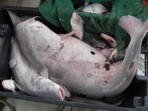 The ultimate goal of their research is to provide a scientific basis for management decisions concerning the species and its recreational fishery. Blue catfish are widely sought by trophy anglers in the Commonwealth, with the current state record a 143-pound blue catfish caught in 2011 in Buggs Island Lake in south central Virginia (also the world record). The largest blue cat from the James River is a 102-pound, 52-inch fish caught in 2009 near Richmond.