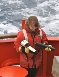 The Rotarian’s annual fellowship gift honors J. Ernest Warinner, a fellow Rotarian who retired as an adjunct assistant professor at VIMS in 1991 after a 30-year career. Mr. Warinner, who passed away in March 2011, was an expert in the use of radioisotopes in marine research. These are unstable forms of elements such as carbon and nitrogen that can be used to trace biological and physical processes in nature.