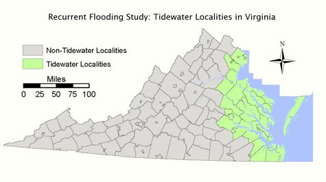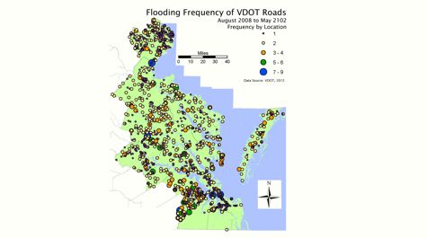 The report—Recurrent Flooding Study for Tidewater Virginia—is the result of a yearlong effort by researchers in VIMS’ Center for Coastal Resources Management. The study was led by Ms. Molly Mitchell and CCRM Director Carl Hershner, with input from an advisory panel that included colleagues at VIMS, Old Dominion University, the W&M Coastal Policy Clinic, the Hampton Roads Planning District Commission, the Accomack-Northampton Planning District Commission, Wetlands Watch, relevant state agencies, as well as cities and counties throughout eastern Virginia.
