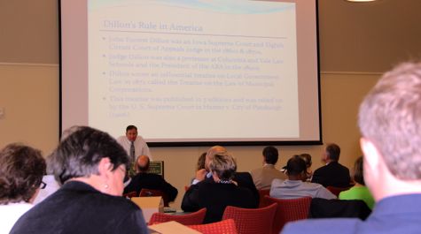Joining the elected representatives at the conference were a number of practicing attorneys and legal scholars, who identified the potential issues involved in local and state-level responses to sea-level rise and coastal flooding—with Dillon’s Rule and the idea of “takings” dominating the discussion.