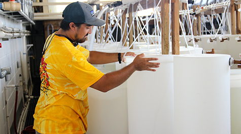 Created in 2009 by Dr. Stan Allen, Director of the Aquaculture Genetics & Breeding Technology Center (ABC) at VIMS, the “OAT” program runs throughout the oyster hatchery season—from April to September—and is built to teach the trainees the various stages of oyster aquaculture by rotating them through hatchery, nursery, and farm grow-out activities.