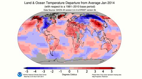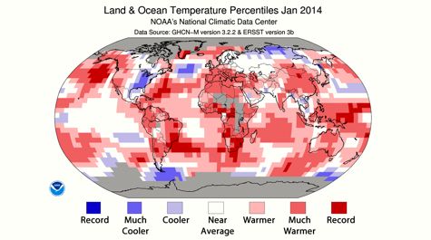 But "weather isn’t climate,” says Professor Roger Mann of the Virginia Institute of Marine Science. Mann, a member of then-Governor Tim Kaine’s 2008 Climate Change Commission, joins with other local scientists in noting that the globally averaged surface temperature during January 2014 was 1.17°F above the 20th-century average. That makes it the warmest January since 2007 and the fourth warmest on record. It is also the 347th-straight month of globally averaged surface air temperatures exceeding the 20th-century mean.