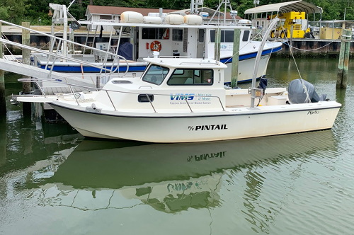 Pintail length: 25 ft motor size: 225 hp davit ready: yes max capacity: 8 people / 1120lbs or 1400 lbs people+gear *this vessel is not trailerable*